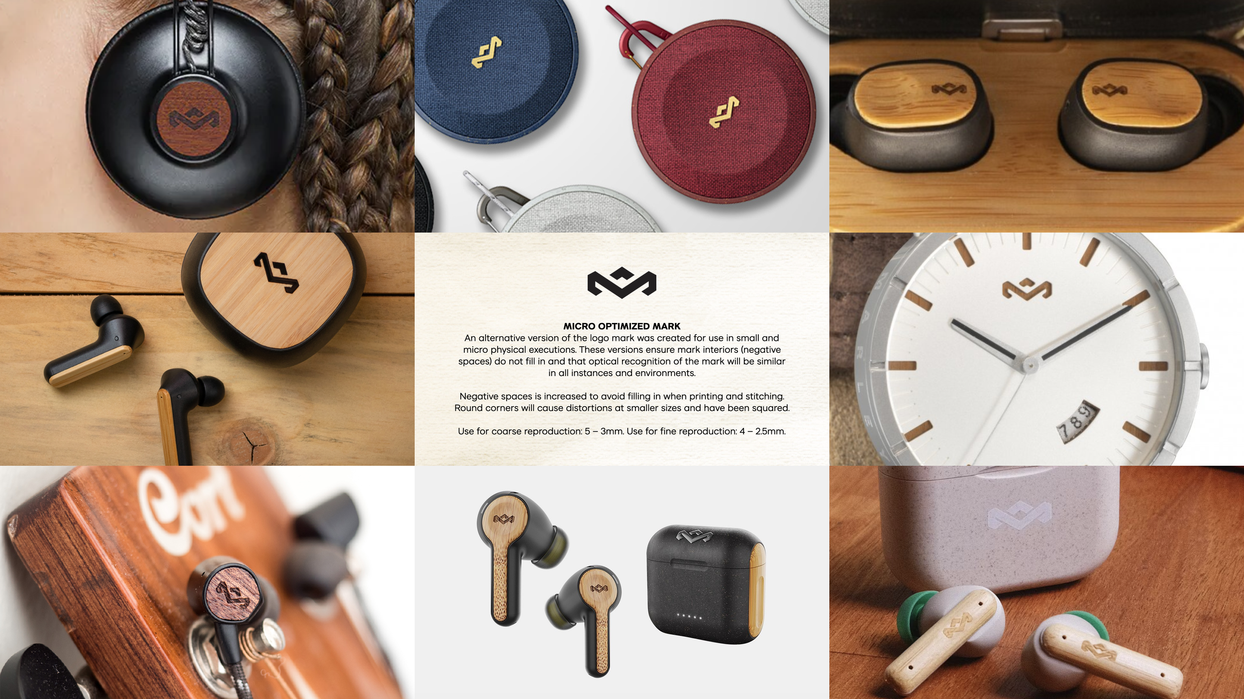 The House of Marley is a lifestyle and sustainable products brand that brings to life the musicality and ethics of Bob Marley and the Marley family. Our work focused on creating a distinctive monogram symbolic of an infinity symbol (referencing their sustainability mission) and a coptic cross-knot (evoking Rastafarian heritage). We built the brand to be replicated in an array of production materials and techniques; it’s a rare brand symbol that can hold up at 7 millimeters.